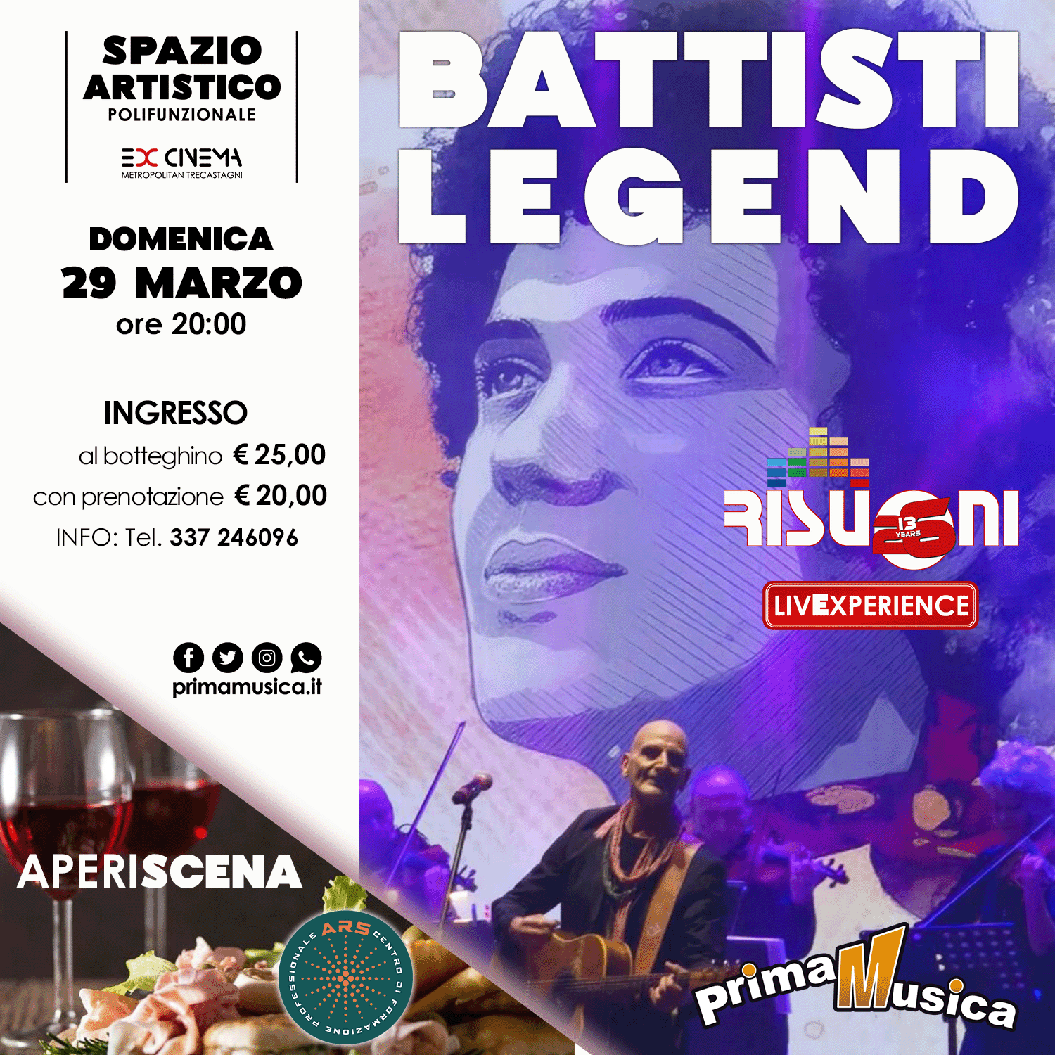 Serata con degustazione RISUONI LIVE EXPERIENCE Tributo Lucio Battisti evento del 29 Marzo 2026. Costo: